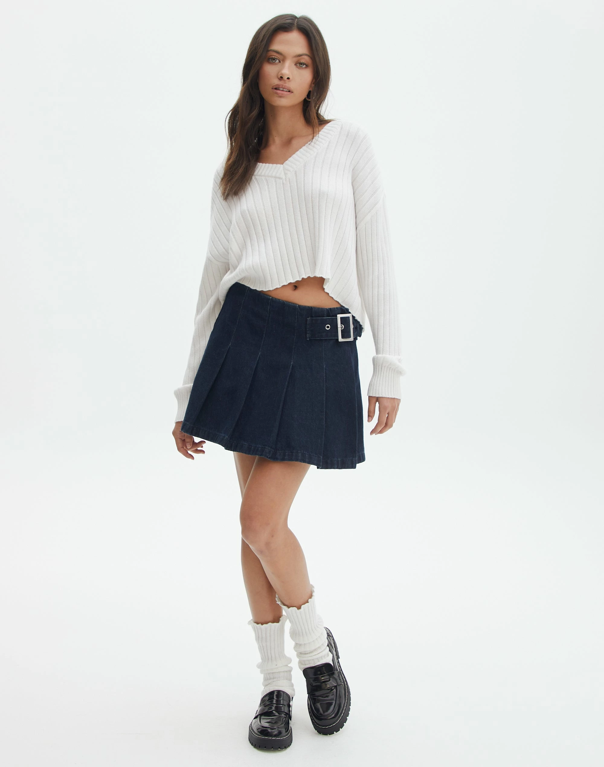 Be the first to review “Denim Mini Pleat Buckle Skirt” Cancel reply