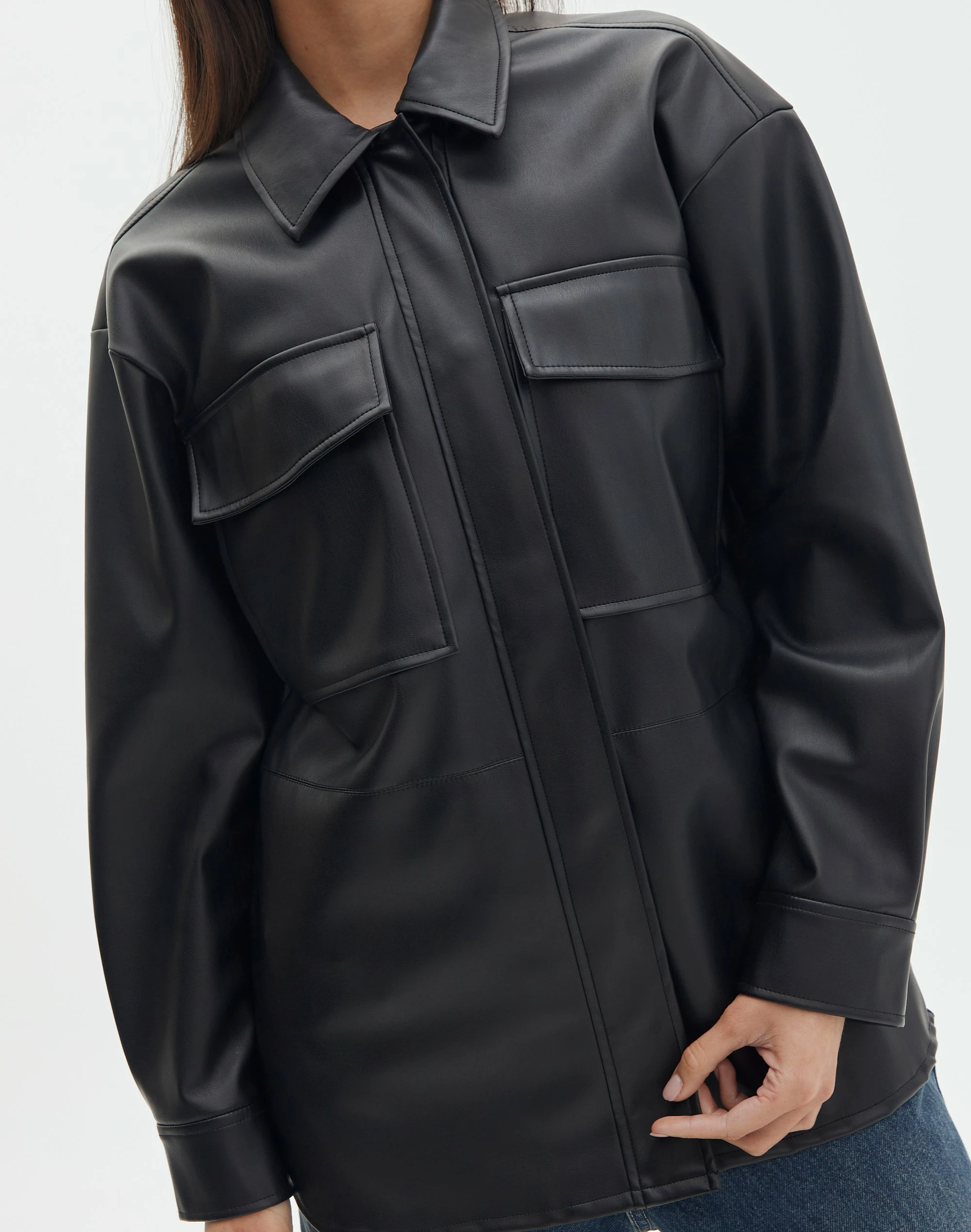 Be the first to review “Double Pocket Oversized Faux Leather Shacket” Cancel reply
