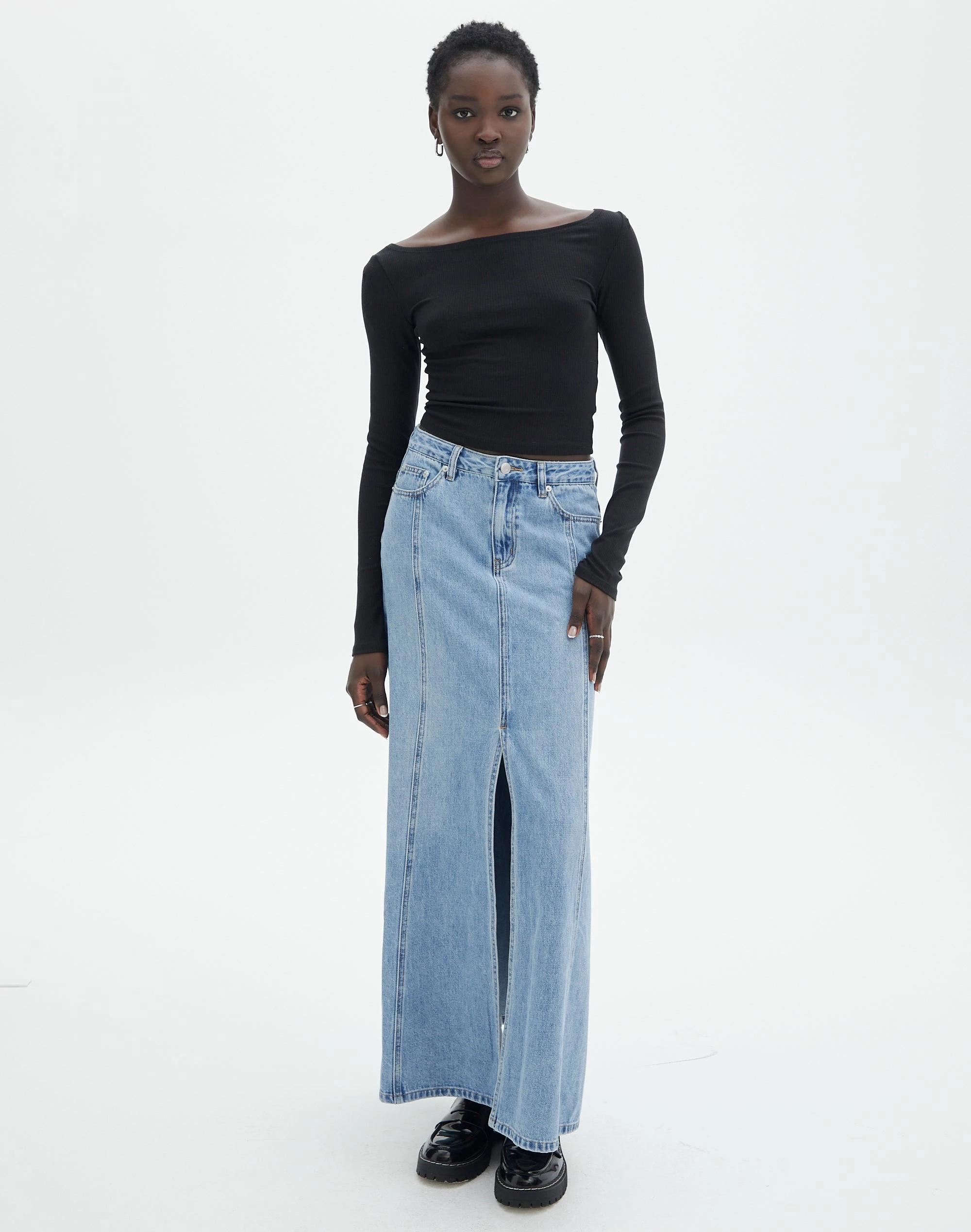 Be the first to review “Front Split Denim Maxi Skirt” Cancel reply