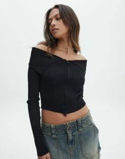 Be the first to review “Zip Front Long Sleeve Fold Down Knit Top” Cancel reply
